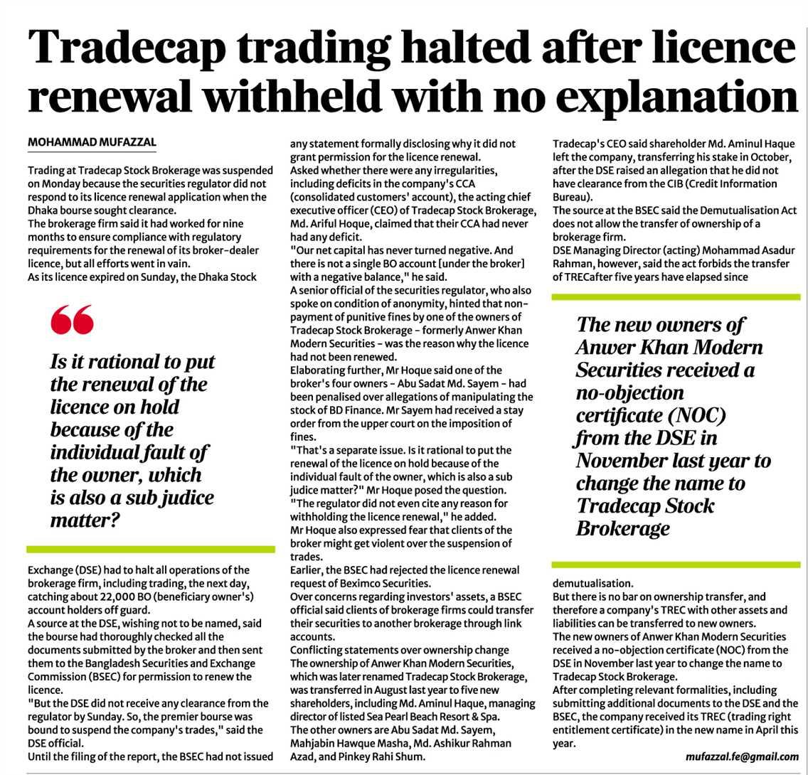 | 3 | Tradecap trading halted after licence renewal withheld with no explanation | 25 Nov 2025 |